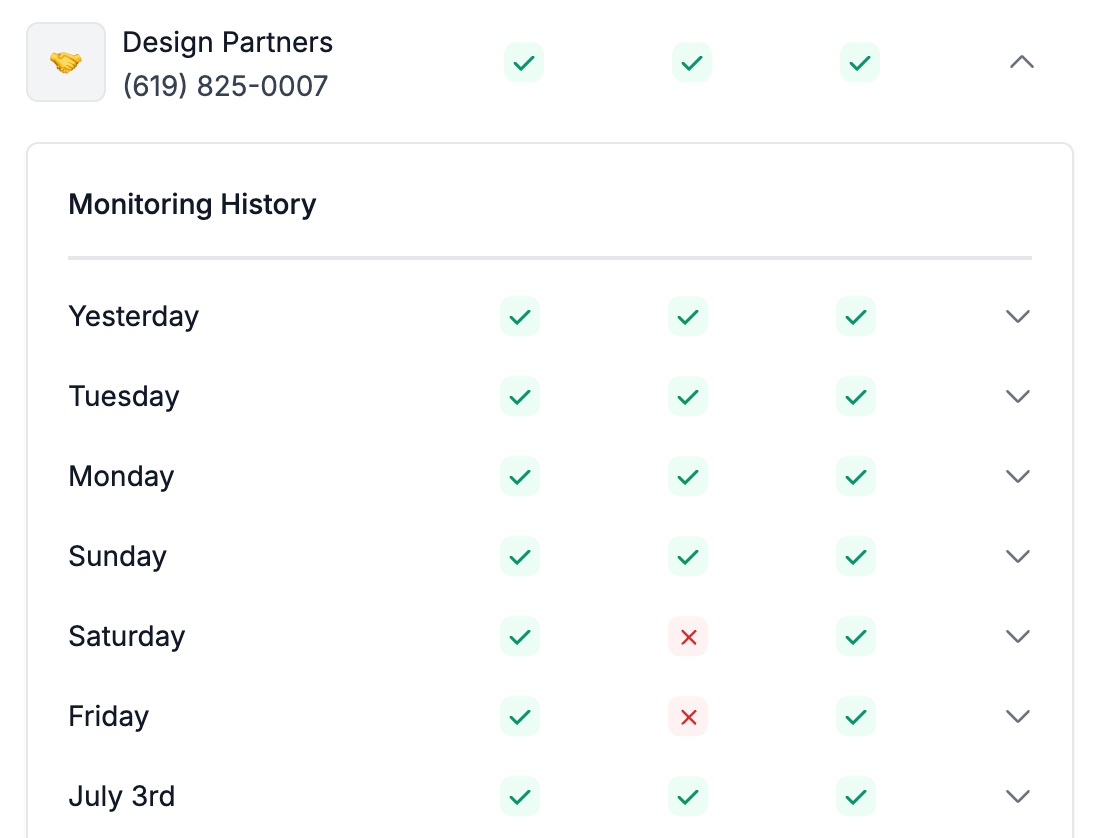 Daily carrier scans catch flags before they waste your day or week. No more discovering the problem from a customer saying 'your number showed as spam.'